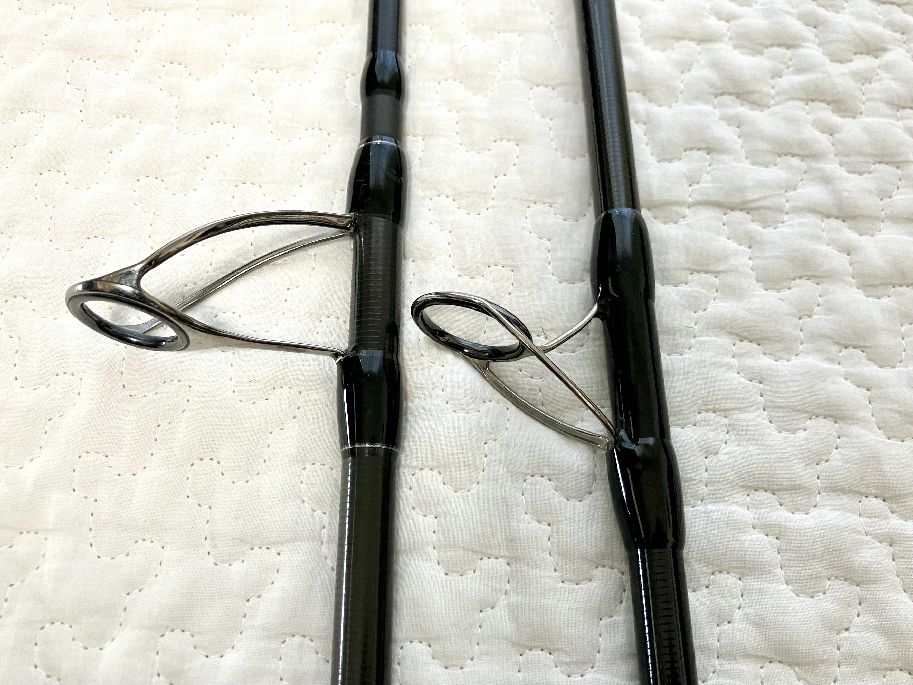 しかしダブルフットで比較した場合、RVガイドの方が重量が軽くなる傾向になります。なので、ダブルフットを使用するパワー系のロッドだと、よりRVガイドの恩恵を受けることが可能です。